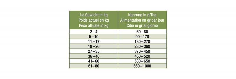 Fütterungsempfehlung Trockenfutter «Nature Junior»: